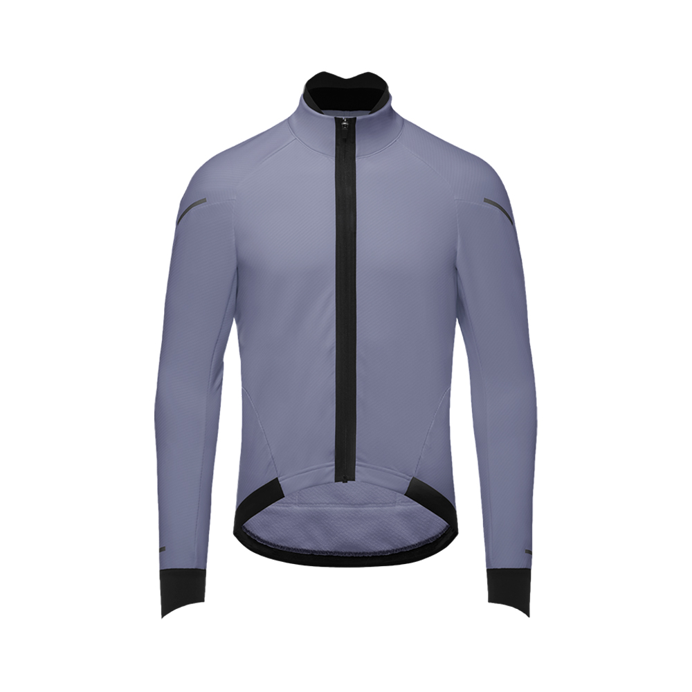 A Cycling Jacket is designed to protect riders from wind, rain, and cold weather while cycling. It is made from lightweight, breathable, and water-resistant fabrics that keep the body dry and comfortable. The jacket usually has a slim, aerodynamic fit to reduce drag and elastic cuffs or hems to stay in place during rides. Many cycling jackets feature reflective details for safety in low-light conditions and pockets for carrying essentials. They provide warmth and protection without restricting movement, making them ideal for all-weather cycling.