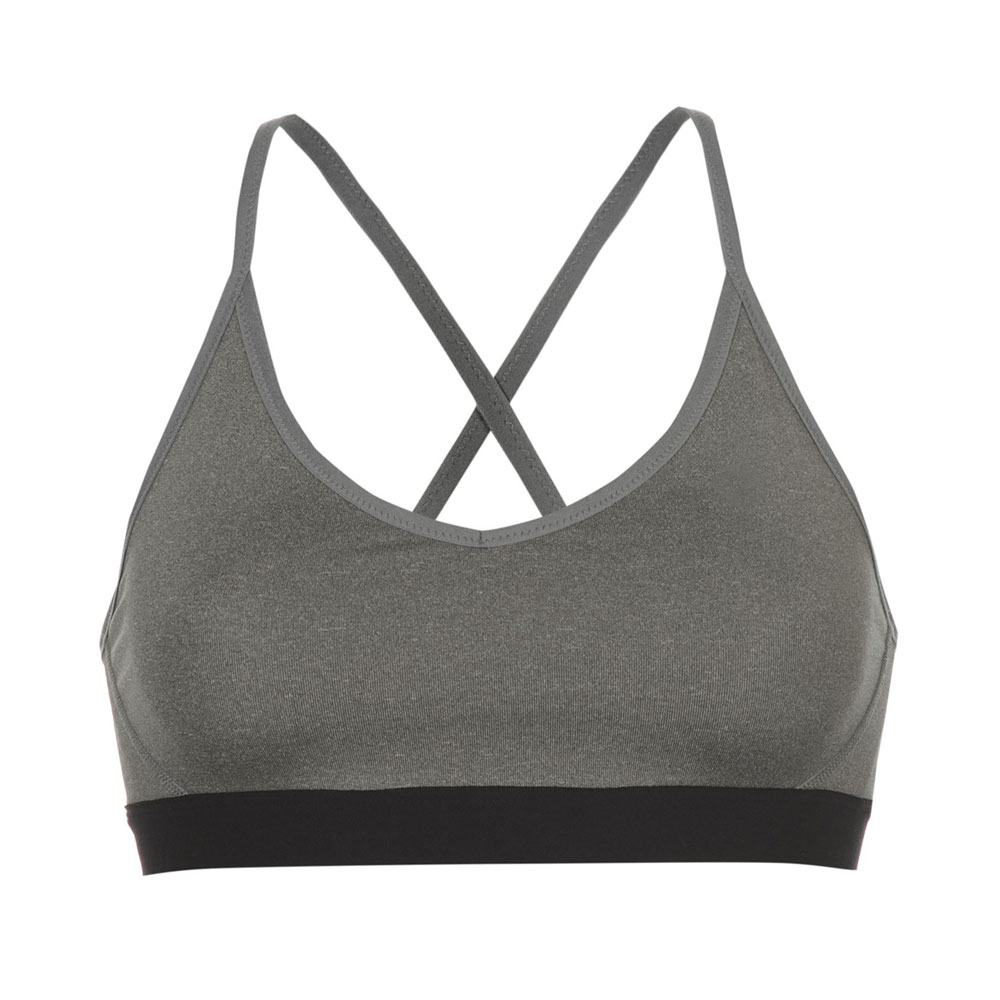 A sports bra is specially designed to provide support and comfort during physical activity. It is made from stretchy, breathable fabric that absorbs sweat and keeps the body cool. The bra holds the chest firmly to reduce movement and prevent discomfort during exercise. It usually has wide straps, an elastic band, and a snug fit for stability. Sports bras come in different styles, such as pullover, racerback, or front-zip, depending on the level of support needed. They are essential for active women to protect muscles and ensure comfort during workouts or sports.