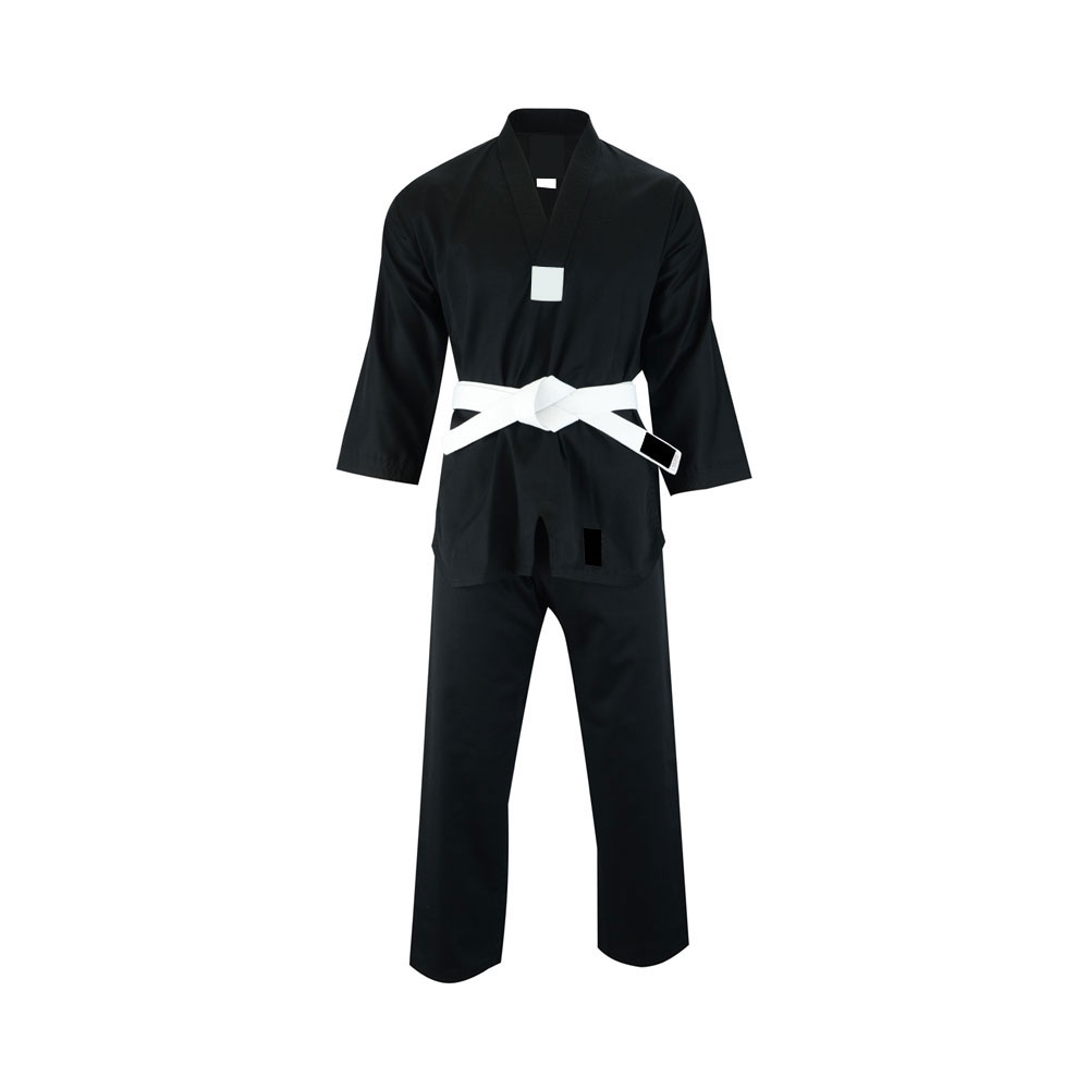 A taekwondo uniform, called a dobok, is simple, lightweight, and designed for free movement. It usually comes in white, symbolizing purity and discipline, with a V-neck jacket that crosses over in the front. The pants are loose-fitting to allow high kicks and quick movements. A colored belt, called a it, is tied around the waist to show the student’s rank. Some uniforms may have school logos or black trim for advanced levels. The fabric is strong yet breathable, making it comfortable for training and competition. The uniform represents respect, tradition, and focus in martial arts. It gives practitioners freedom to practice techniques with speed and power.