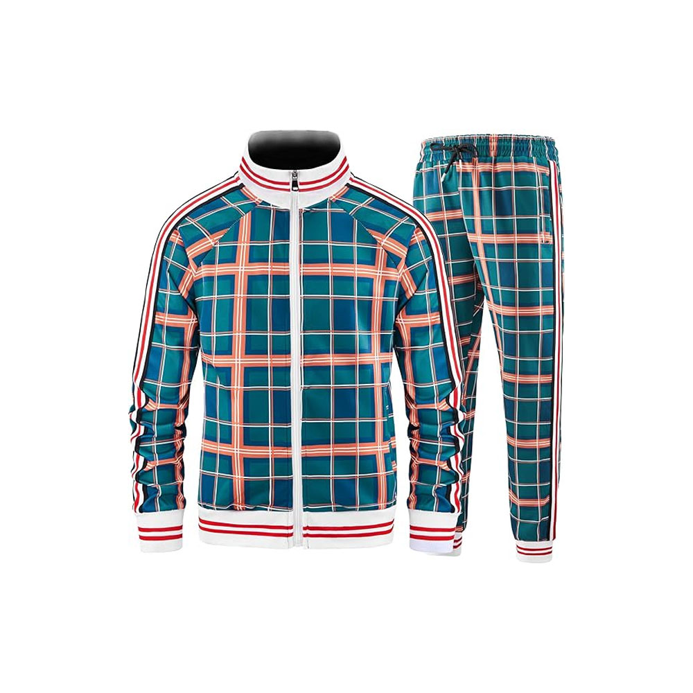 A tracksuit is a two-piece athletic outfit typically consisting of a jacket (with a zip or pullover style) and matching pants. It is made from lightweight, breathable, and stretchable fabrics like polyester, cotton, or nylon blends, designed for comfort and ease of movement. Tracksuits are often used for workouts, jogging, warm-ups, or casual wear. The pants usually have an elastic waistband and cuffs, while the jacket may feature pockets and a collar or hood. Tracksuits are available in different colors and designs, combining sporty style with practicality.