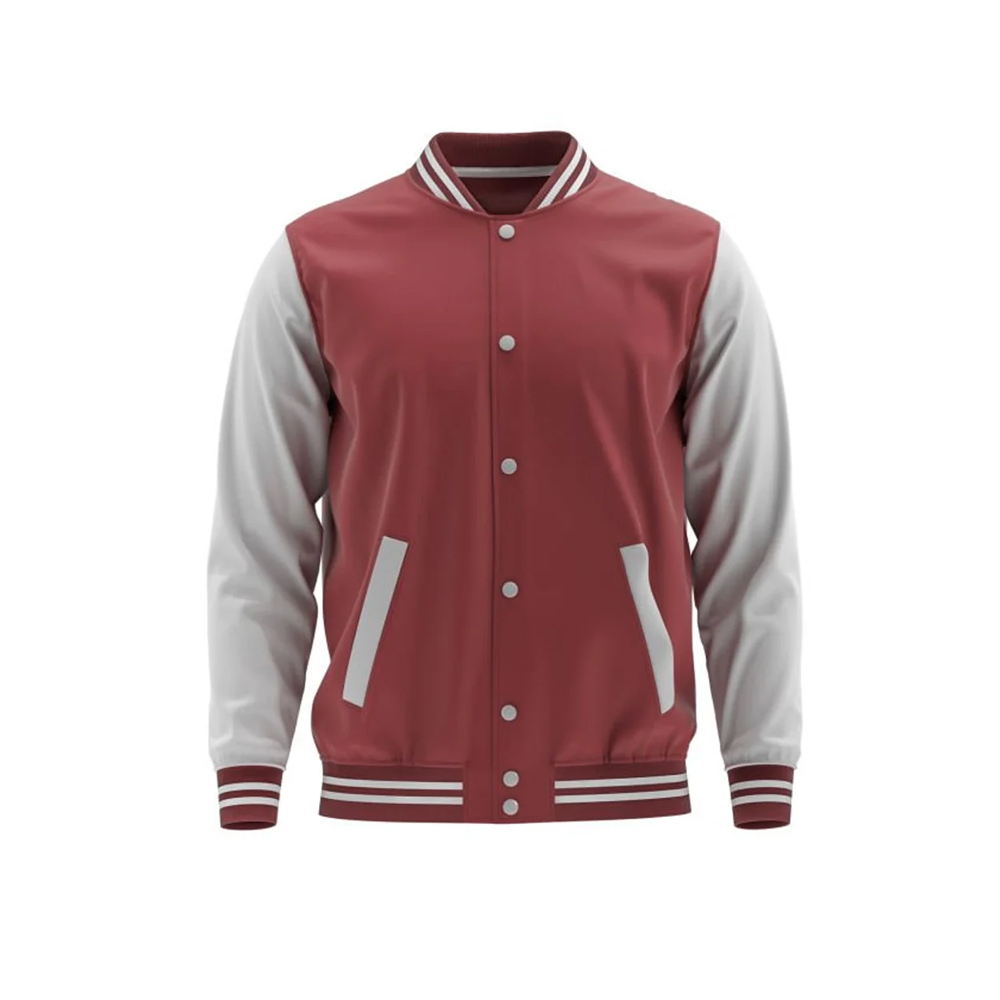 A varsity jacket, also known as a letterman jacket, is a classic sporty jacket that symbolizes school or team spirit. It typically has a wool body with contrasting leather sleeves, giving it a bold two-tone look. The front often features chenille letters, patches, or logos representing a school, team, or achievement. Varsity jackets have ribbed collars, cuffs, and waistbands with striped designs for a sporty finish. They usually include snap-button closures and side pockets for practicality. Popular in both athletics and fashion, varsity jackets blend comfort, style, and tradition.